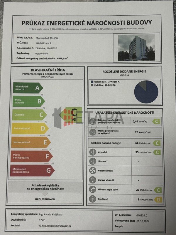 měsíční zálohy na energie + fond oprav: 4 500 Kč
