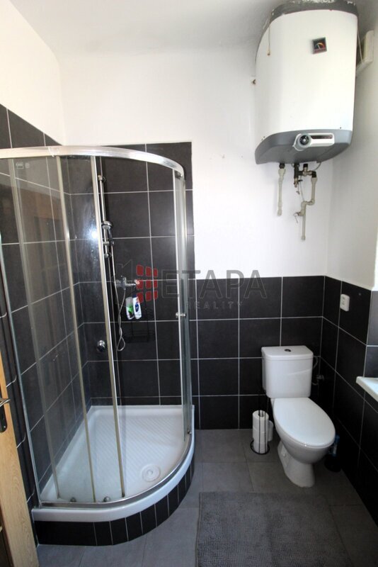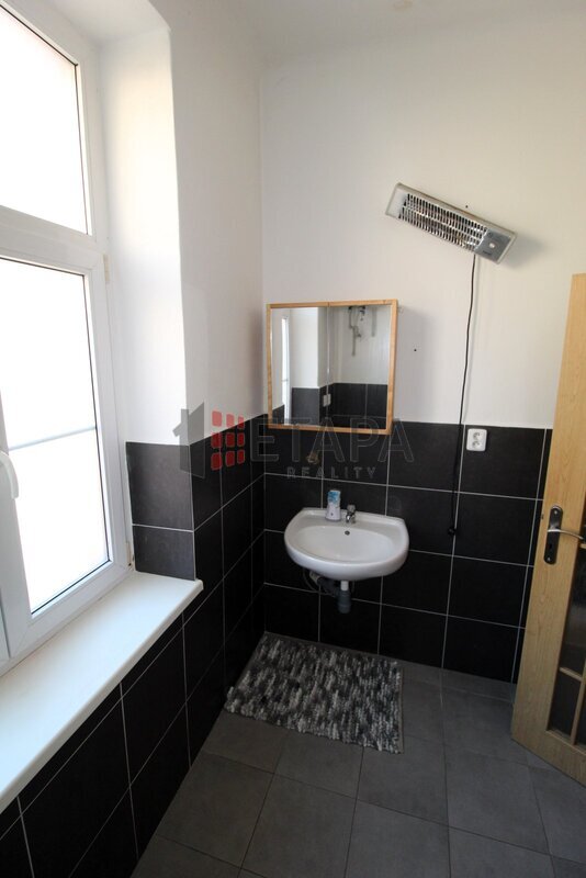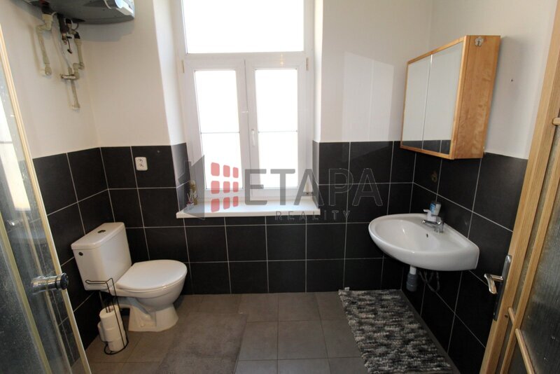 Prostorná koupelna je vybavena sprchovým koutem, umyvadlem a toaletou. Vytápění je řešeno kamny na dřevo či brikety a elektrickým přímotopem, ohřev teplé vody zajišťuje bojler. K bytu náleží sklep v 1. PP domu. Po domluvě s majitelem je možné využívat také zahradu u domu, kde se nachází pergola s posezením.